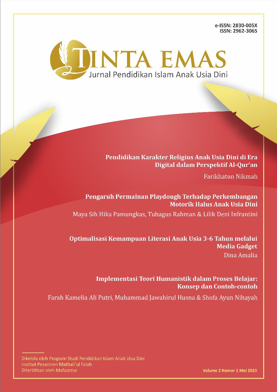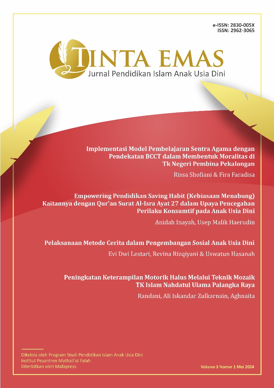 Tinta Emas: Jurnal Pendidikan Islam Anak Usia Dini ISSN online 2830-005X Program Studi Pendidikan Islam Anak Usia Dini Fakultas Tarbiyah Institut Pesantren Mathali'ul Falah Pati